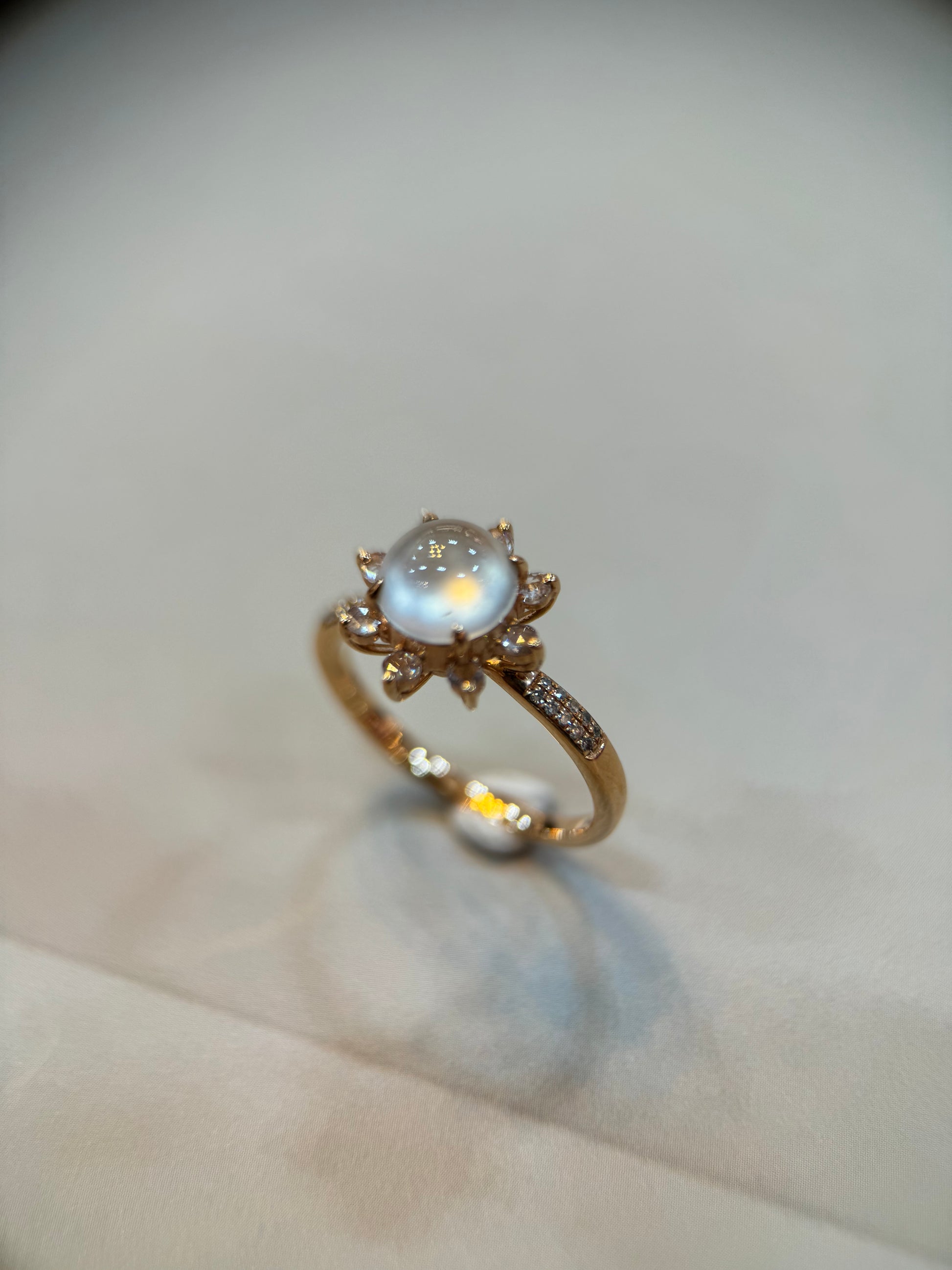 Introducing our exquisite Jade cabochon ring, a glassy variety renowned for its supreme quality sourced from the finest icy Jade. Crafted to perfection, it features a luminous glow and a flawless dome shape with optimal thickness. The Jade's clear white hue exudes elegance, complemented by a setting of diamonds and 18k rose gold. Designed for casual wear, it offers a small yet refined aesthetic, perfect for enhancing any ensemble with understated luxury.