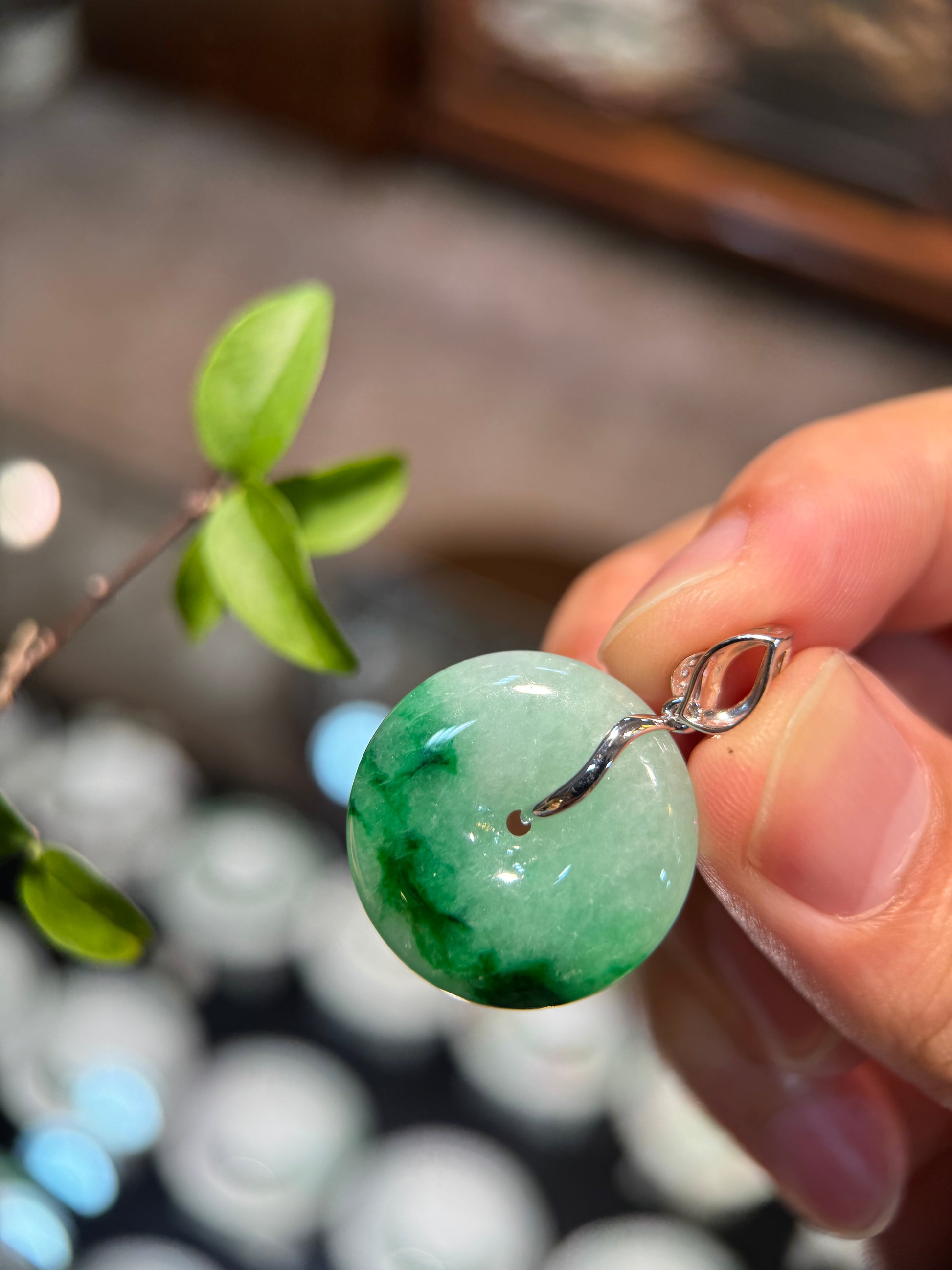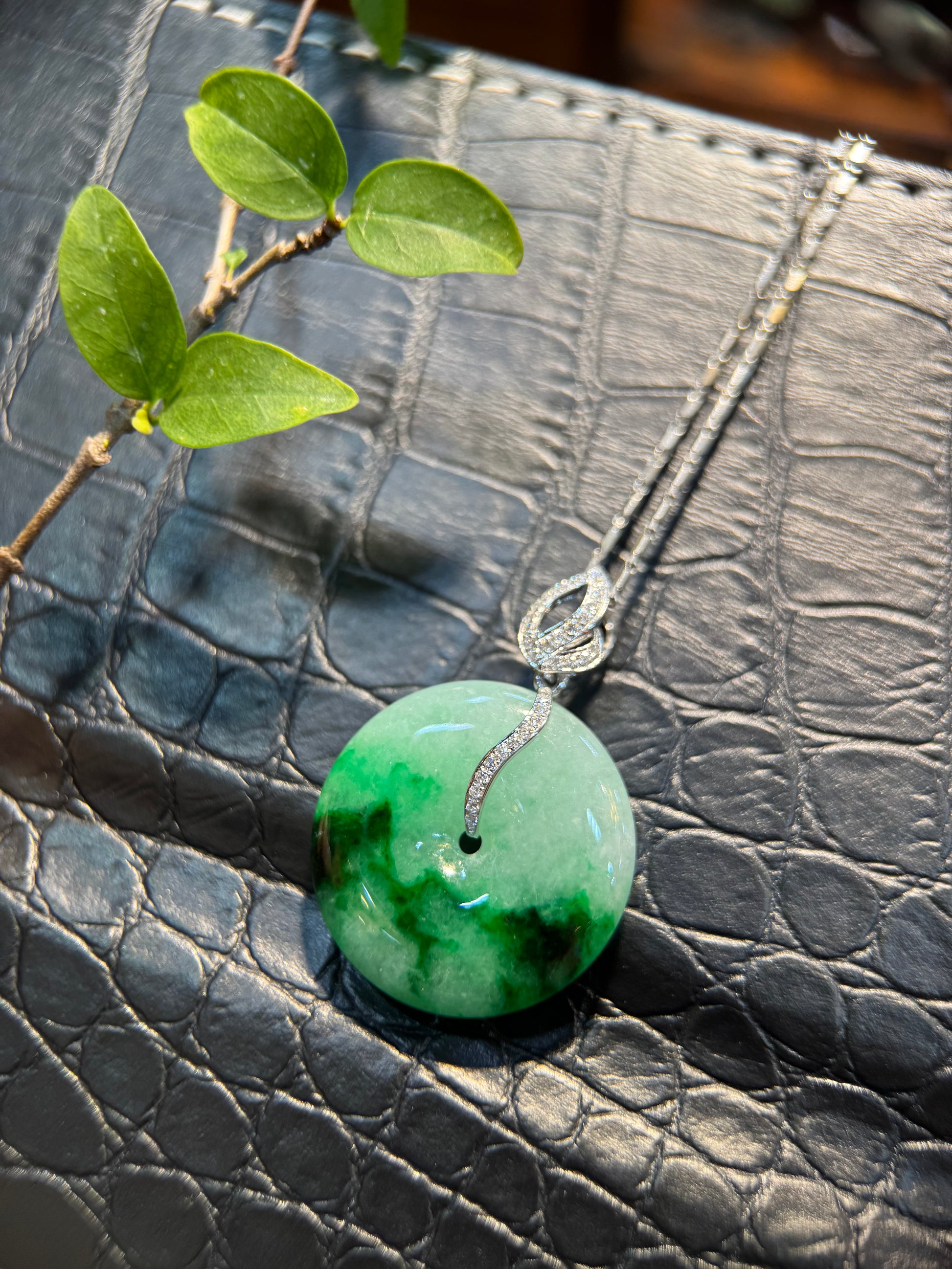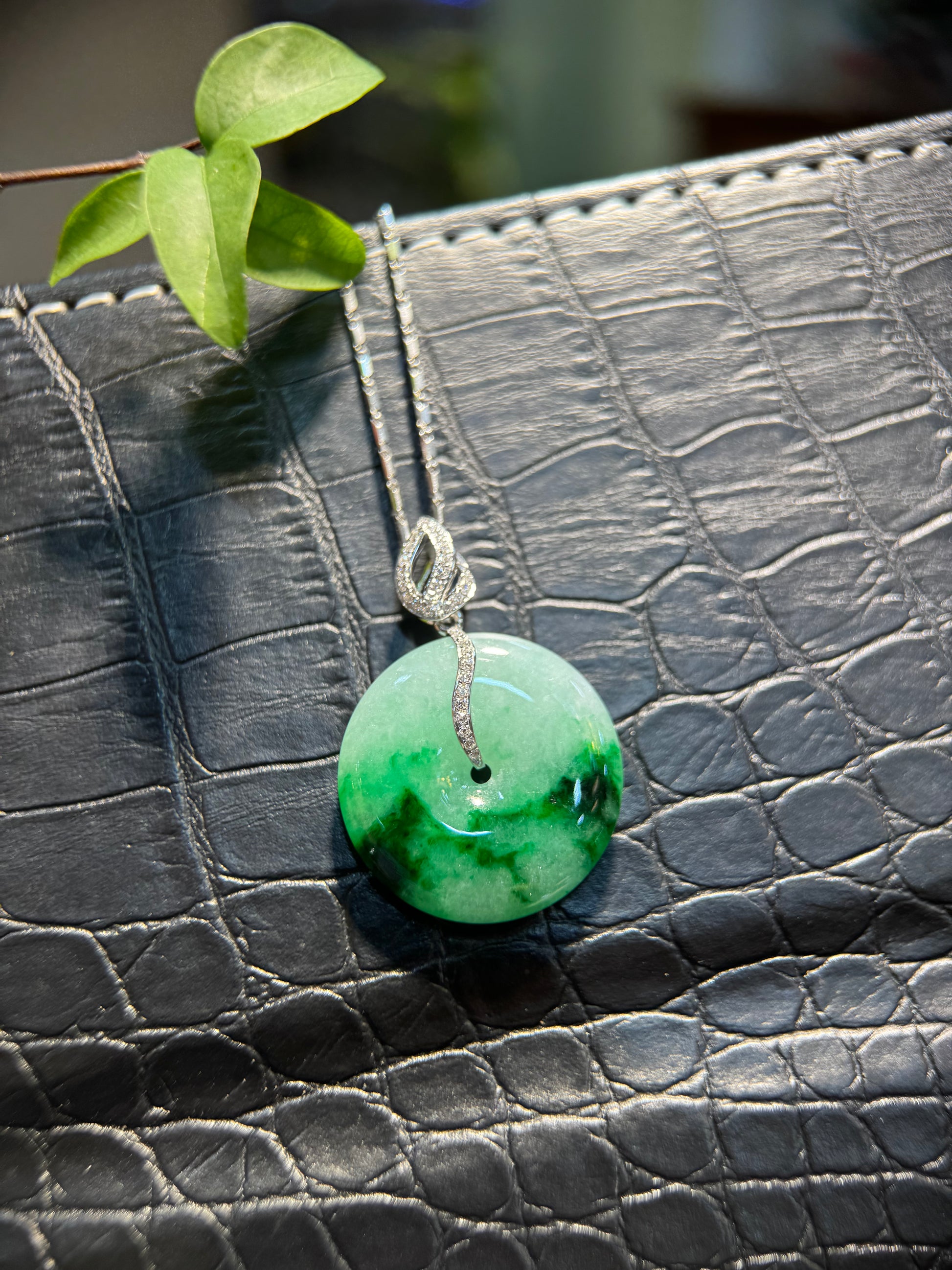 The dark green jade safety coin pendant, set in simple 18k white gold and diamonds, is not only stylish but carries significant symbolism. Traditionally, the coin represents wealth and prosperity. Additionally, wearing it for safety and protection, especially during outdoor activities and travel, adds another layer of meaning. It serves as a talisman, safeguarding the wearer in various aspects of life. Given its protective symbolism, it also makes a thoughtful gift, particularly for a new born baby and elderly, symbolizing wishes for a safe and prosperous future.