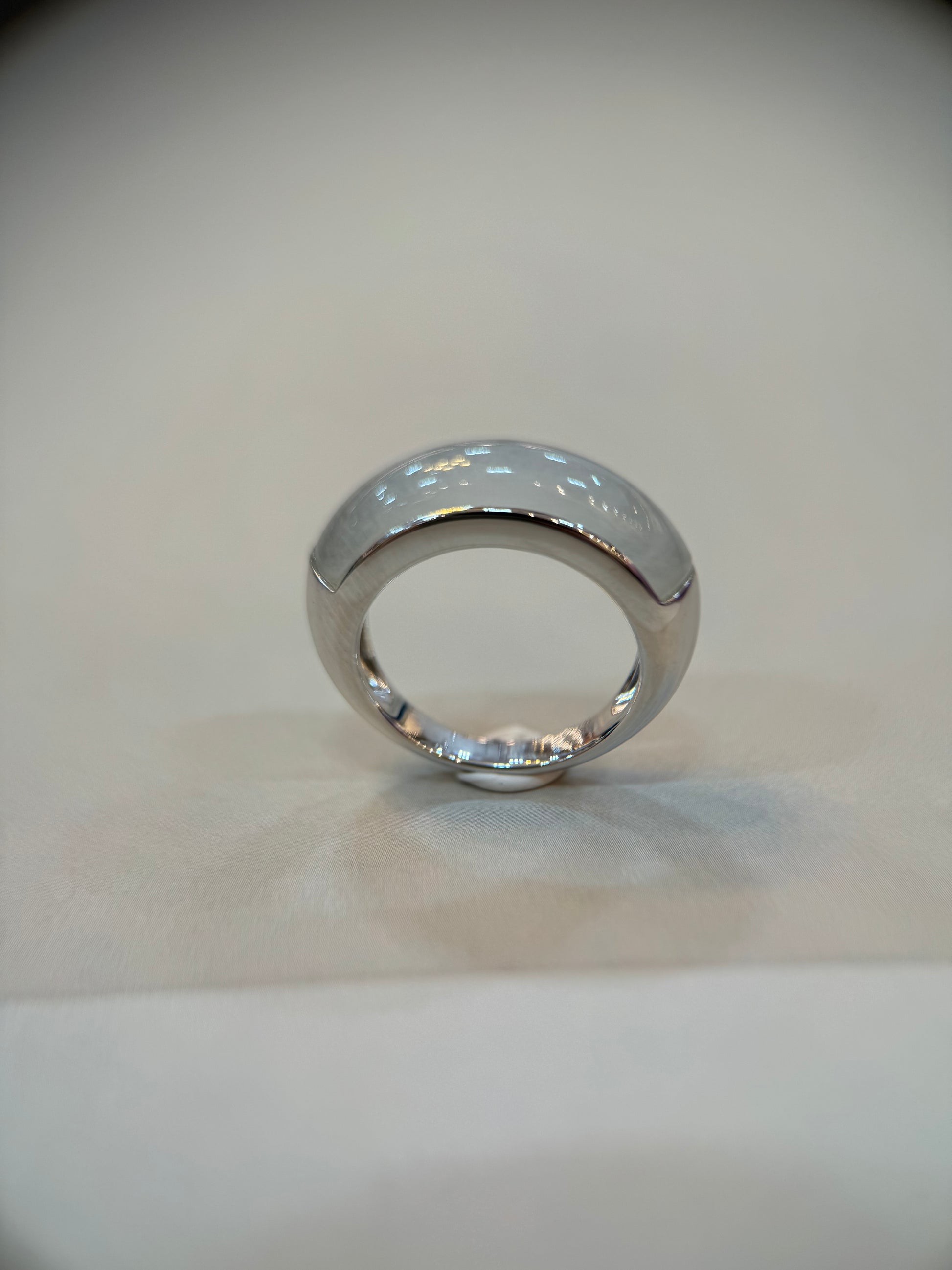 Introducing our Icy Curved Shape Ring, a masterpiece of elegance and refinement. Set in luxurious 18K white gold, this ring showcases jade of exceptional quality—highly translucent with fine stone aggregate, and characterized by higher density and insignificant impurities.